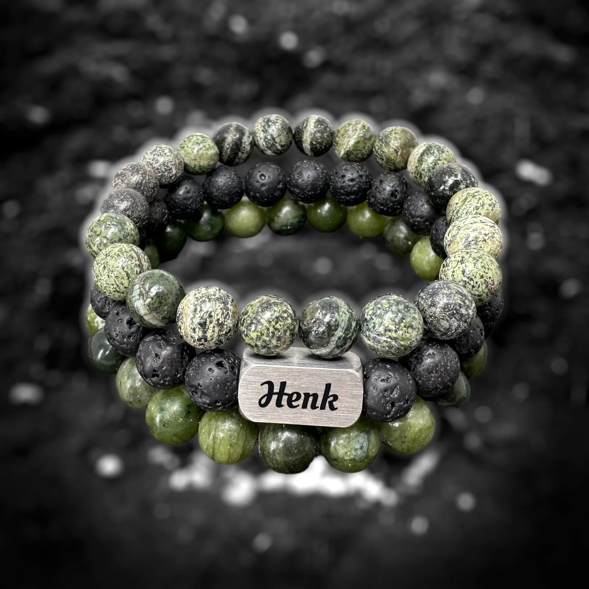 4 beoordelingen voor Heren 3 Armbanden Set: Zebra Stone • Lava Rock • Natural Jade