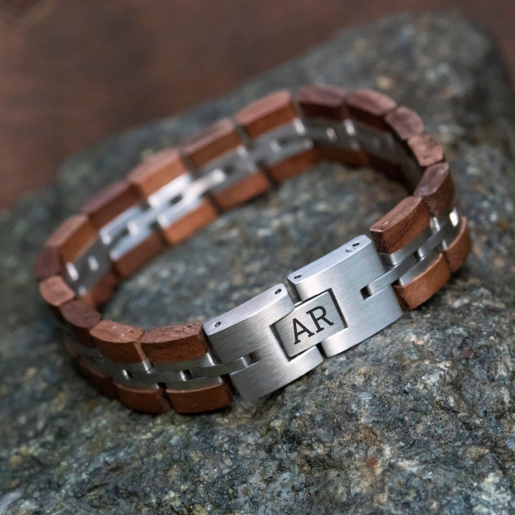 De TimberWood initialen houten armband is de perfecte mix van stijl en persoonlijkheid. Deze robuuste armband combineert hoogwaardig walnoothout met roestvrij staal (316L) voor een authentieke en tijdloze uitstraling. De warme houtkleur en het edelstaal zorgen samen voor een verfijnde, maar stoere look.