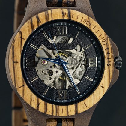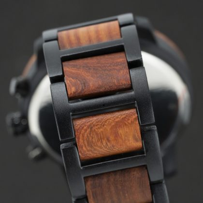 Met zijn indrukwekkende kastdiameter van 48 mm en brede houten band van 24 mm is dit horloge een echte eyecatcher op elke pols.