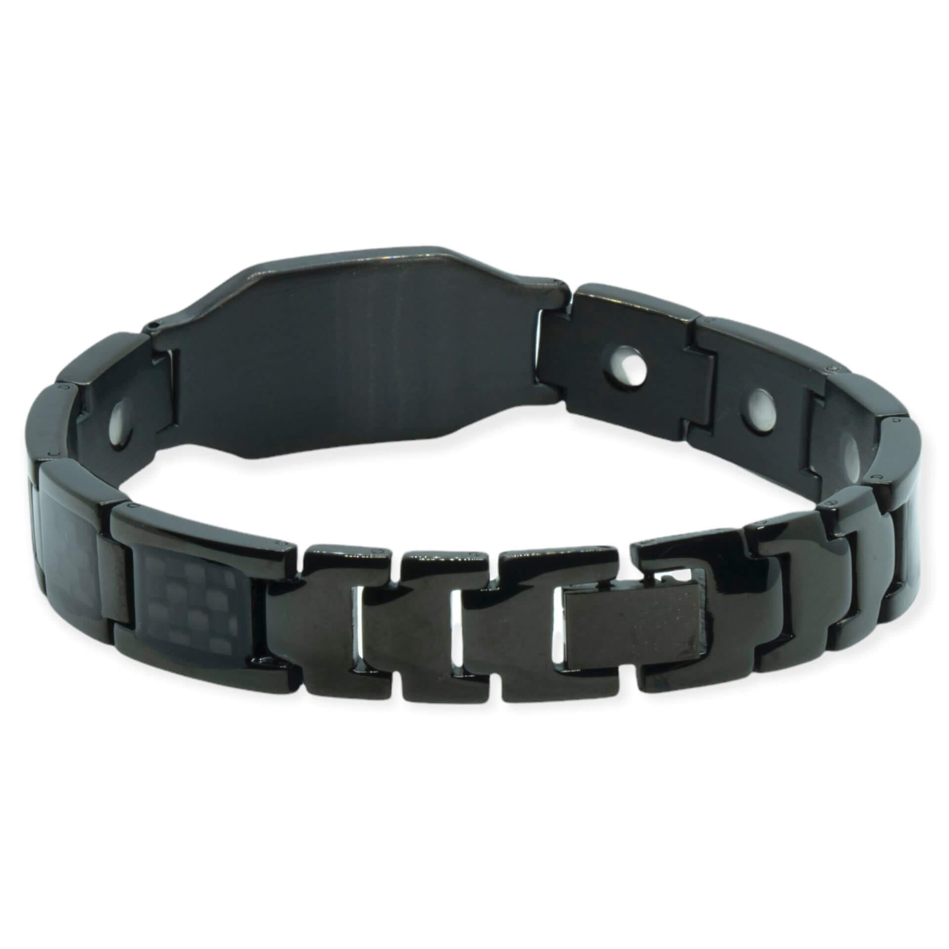 De binnenzijde van de armband is voorzien van diverse energieke elementen en magneten, die direct op de huid inwerken. Dit kan bijdragen aan een betere balans, meer energie en ontspanning. De schakels met carbon zorgen niet alleen voor een opvallend design, maar versterken ook het moderne karakter van de armband.