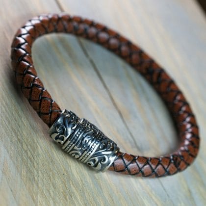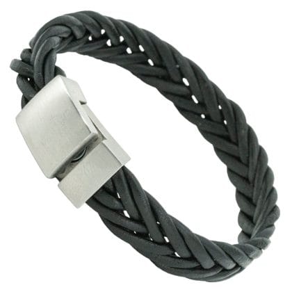Oorspronkelijke prijs was: €84,90.€59,90Huidige prijs is: €59,90.Edelstalen Armband met gravure – gevlochten leer