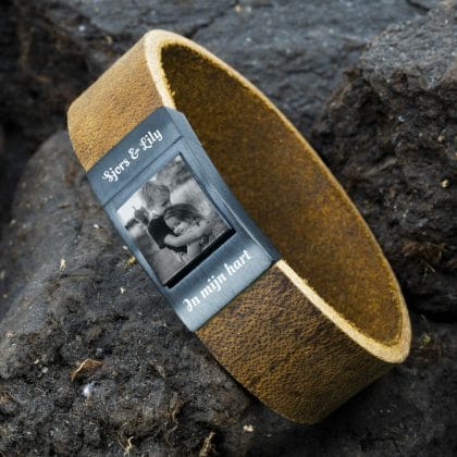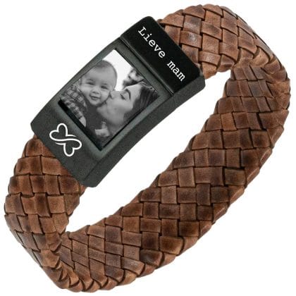 Oorspronkelijke prijs was: €85,90.€67,90Huidige prijs is: €67,90.Fotoarmband gevlochten leer Bruin of Zwart – Eigen Foto op armband