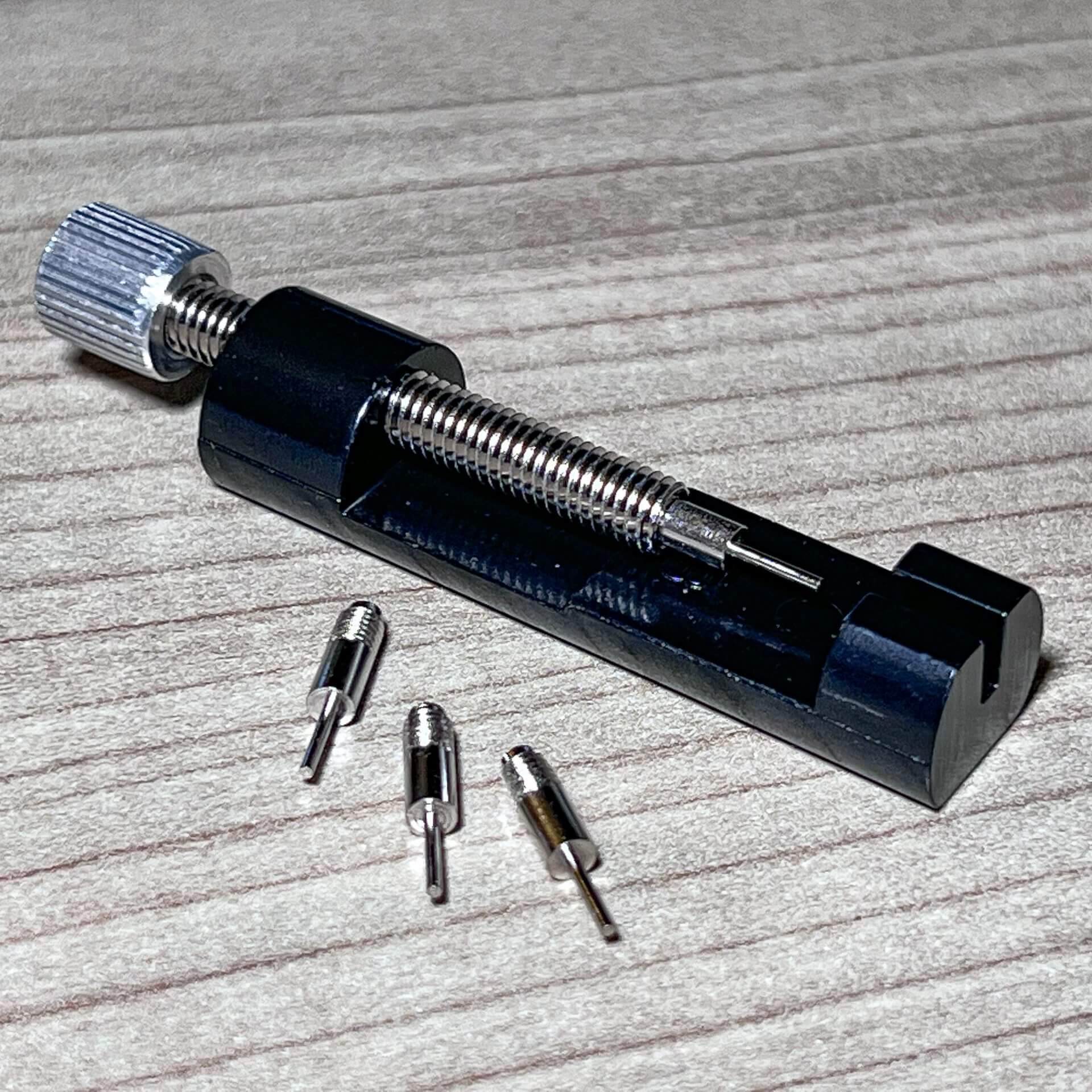 Met onze complete horloge reparatie set kun je horlogebanden inkorten of vergroten tot een maximale breedte van 26mm, zodat jouw horloge of armband altijd perfect past. De set bevat een metalen (geen kunststof!) horlogeband inkorter, een drukker en 3 extra pinnen om te gebruiken indien nodig. Bekijk onze handleiding voor het gebruik van deze metalen versteller.