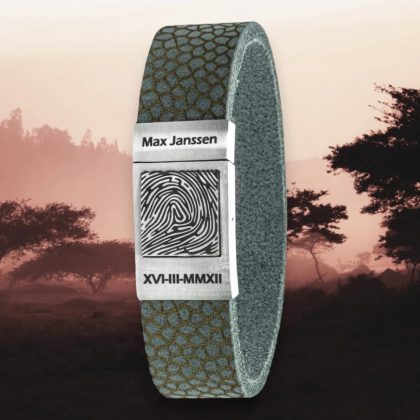 Op zoek naar een uniek en persoonlijk sieraad dat jouw dierbare altijd dichtbij houdt? Dan is de vingerafdruk armband Italiaans leer – Striped Edition de perfecte keuze. Deze handgemaakte armband wordt gegraveerd met een foto van jouw eigen vingerafdruk, zodat je altijd een stukje van jezelf of een geliefde bij je draagt.