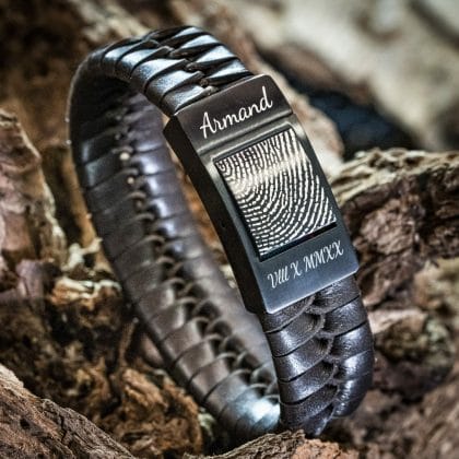 15 beoordelingen voor Vingerafdruk op armband – bruin Gevlochten leren Armband